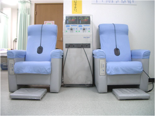 高電位治療器ハッピーライフは、地球表面の電位に対して所定の電位を生体にかける治療器です。電圧の交流電界の中に身体を置くことで、人体の表皮と大気は、電離作用によるイオンを起こし、身体の新陳代謝を活発に促します。