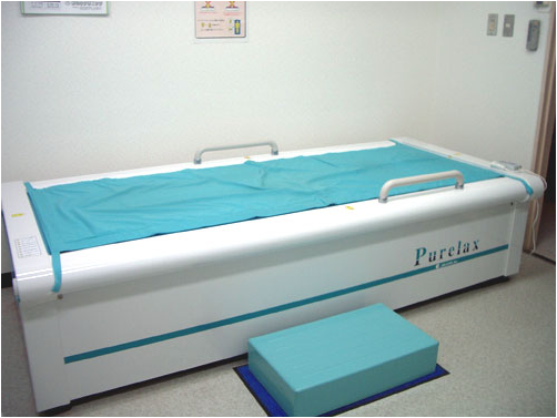 水に浮くやわらかい感覚で水圧刺激を更に進化させた全身治療システムです。ウォーターベットの温かいマットの上に横になっていただき、無理のない姿勢でリラックスした状態から「打たせ湯」の様な水圧が、全身を心地よくほぐしていきます。